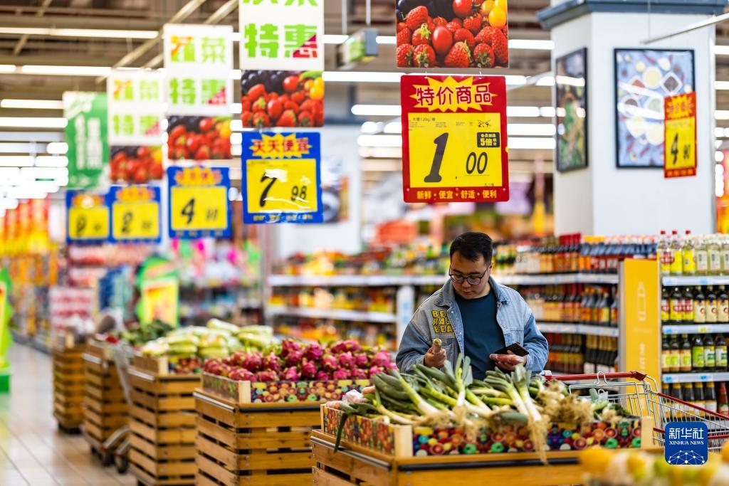 4月11日,消費者在貴州省安順市西秀區一家超市選購蔬菜。