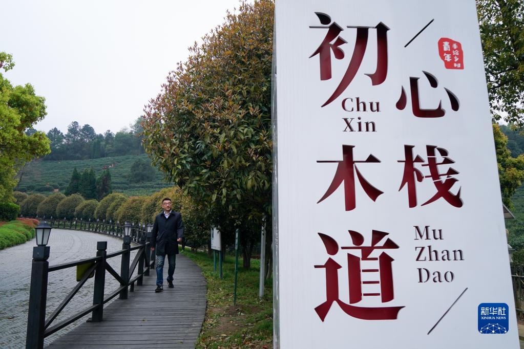 4月6日,彭銳行走在樹(shù)山村的木棧道上。 新華社記者 李博 攝