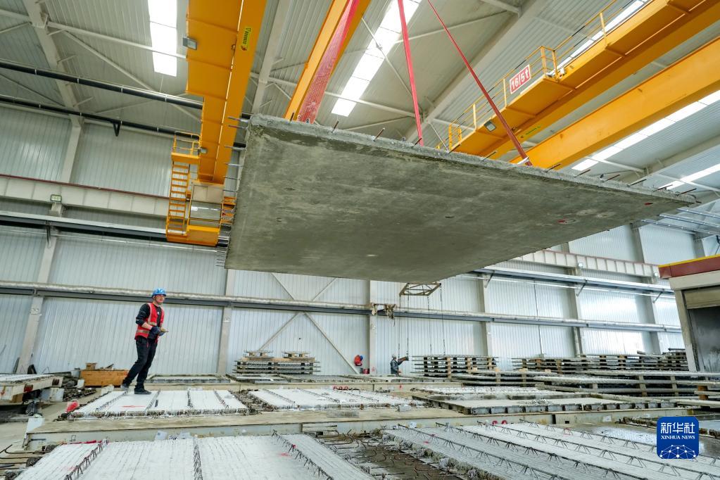 4月11日,河北省玉田縣一家裝配式建筑制造企業(yè)的工人在吊運產(chǎn)品。