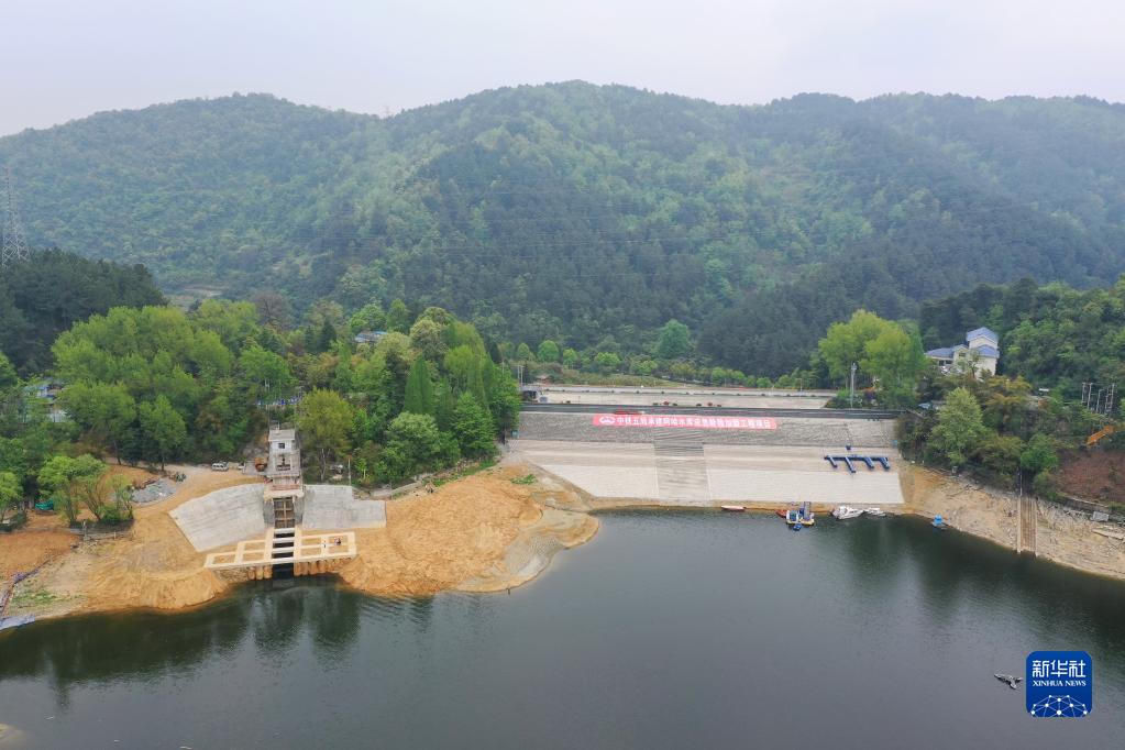 4月11日拍攝的加固工程主體完工后的阿哈水庫大壩(無(wú)人機照片)。