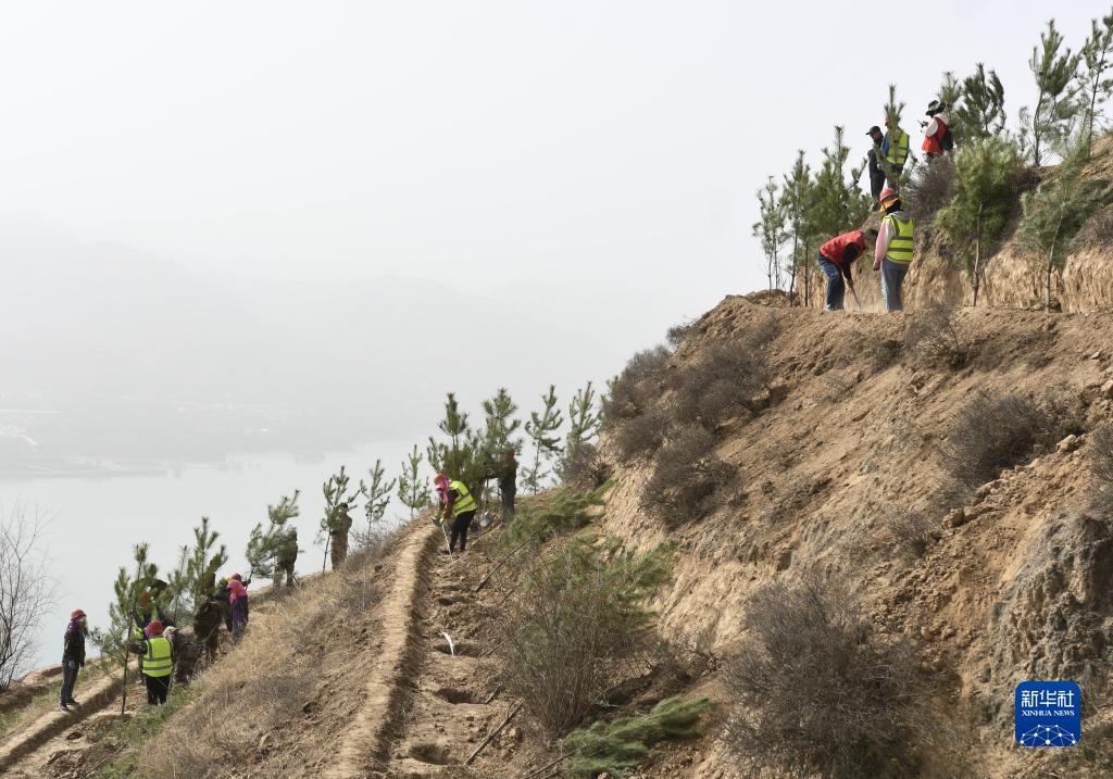 當日,地處黃河中上游的甘肅省永靖縣搶抓春季造林時(shí)節,組織當地干部職工在黃河劉家峽水庫周邊荒山荒坡上義務(wù)植樹(shù),用實(shí)際行動(dòng)為母親河增添新綠。
