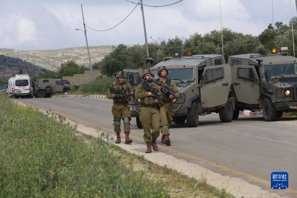 這是4月11日在納布盧斯交火現場(chǎng)附近拍攝的以色列士兵。