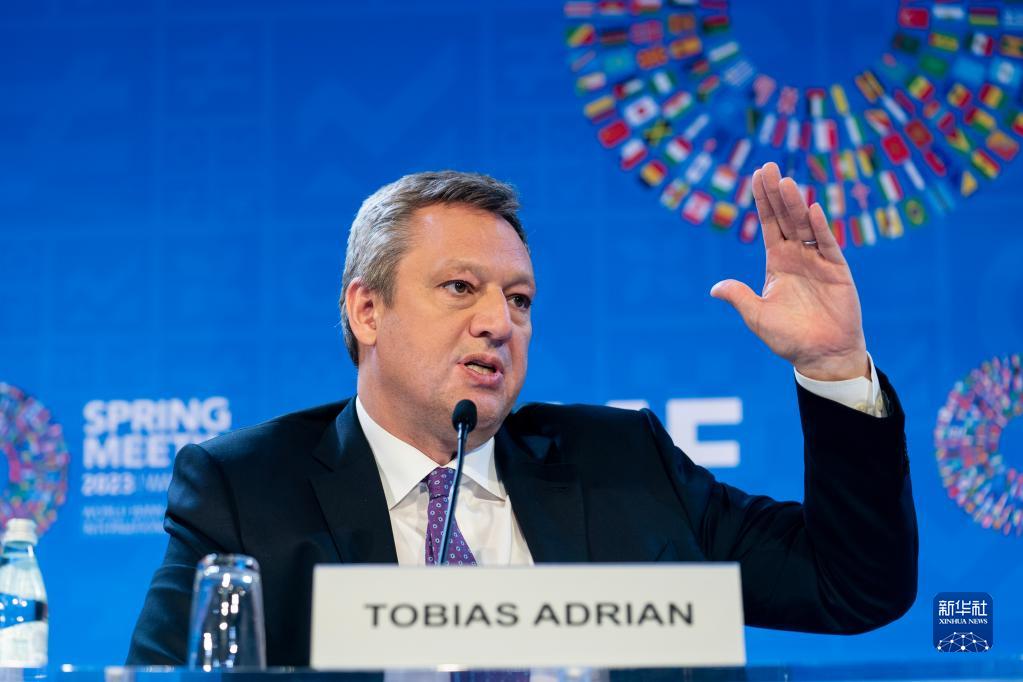 4月11日,在美國華盛頓,IMF貨幣與資本市場(chǎng)部主任托比亞斯·阿德里安出席記者會(huì )。