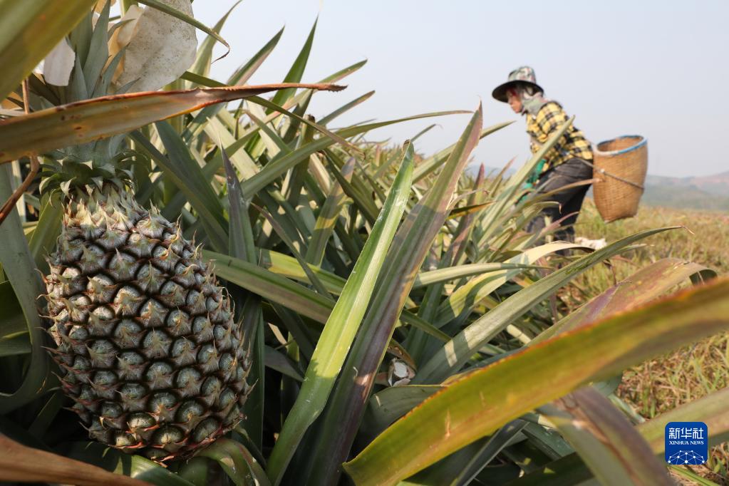 近日,云南省西雙版納傣族自治州景洪市鳳梨種植基地的鳳梨成熟,工人忙著(zhù)采摘、分揀、裝箱銷(xiāo)往市場(chǎng)。近年來(lái),景洪市因地制宜引進(jìn)鳳梨種植企業(yè),豐富熱帶水果品種,帶動(dòng)當地農民增收。