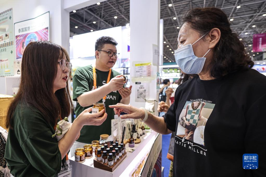 4月12日,消博會(huì )泰國館的參展商向觀(guān)眾介紹泰國產(chǎn)品。