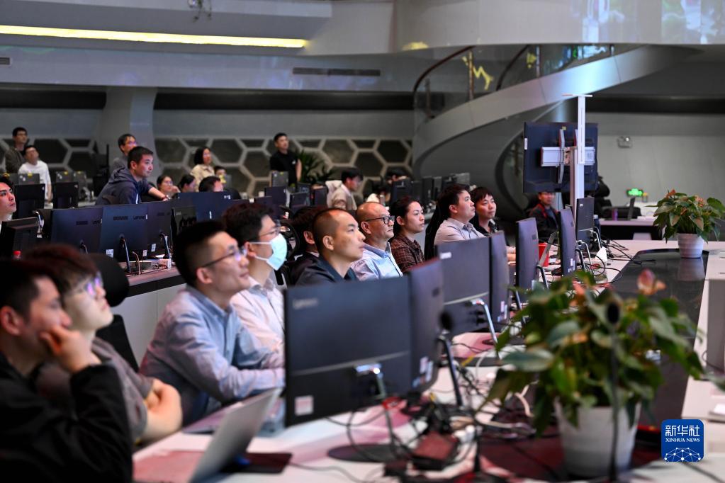 4月12日,在全超導托卡馬克核聚變實(shí)驗裝置(EAST)控制大廳,科研人員在等待實(shí)驗結果。