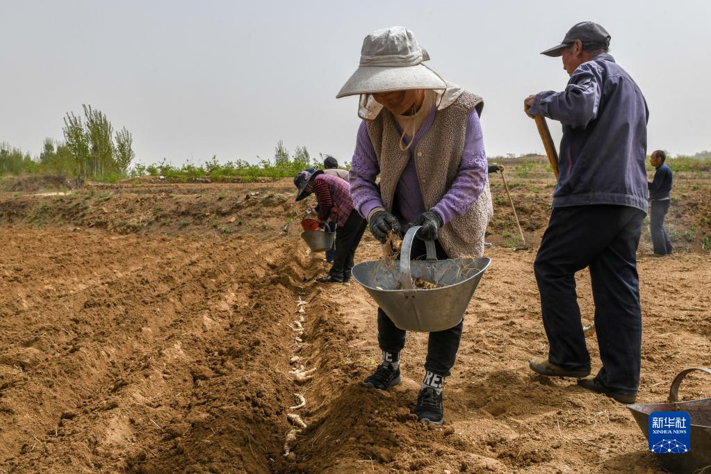 4月12日,泰安市岱岳區耿莊村農業(yè)合作社成員在播種黃精。