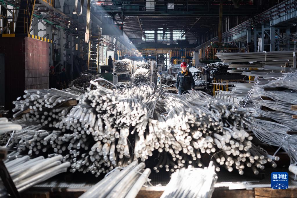 4月13日,在中鋁集團東北輕合金有限責任公司,工人在生產(chǎn)廠(chǎng)區作業(yè)。