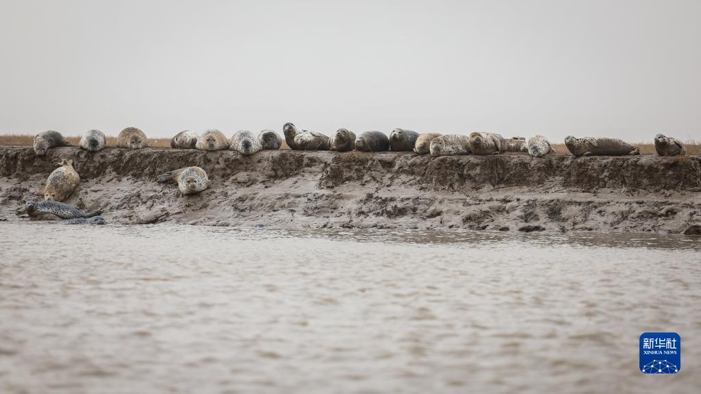 4月13日,西太平洋斑海豹在遼寧盤(pán)錦三道溝海域的灘涂上休息。
