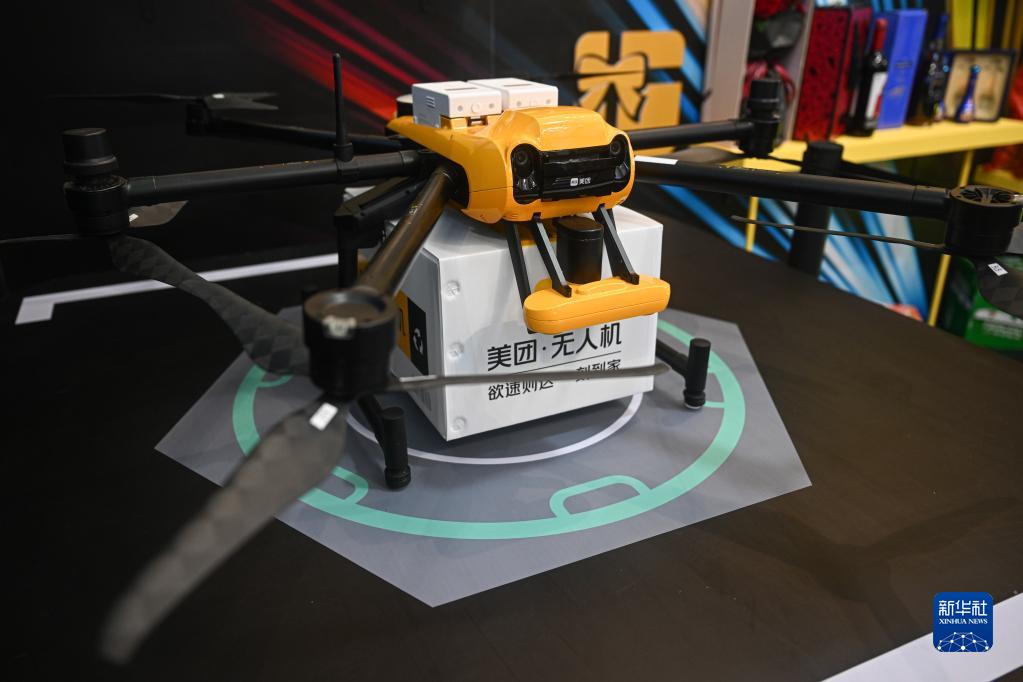 這是4月13日在美團展臺拍攝的美團無(wú)人機。