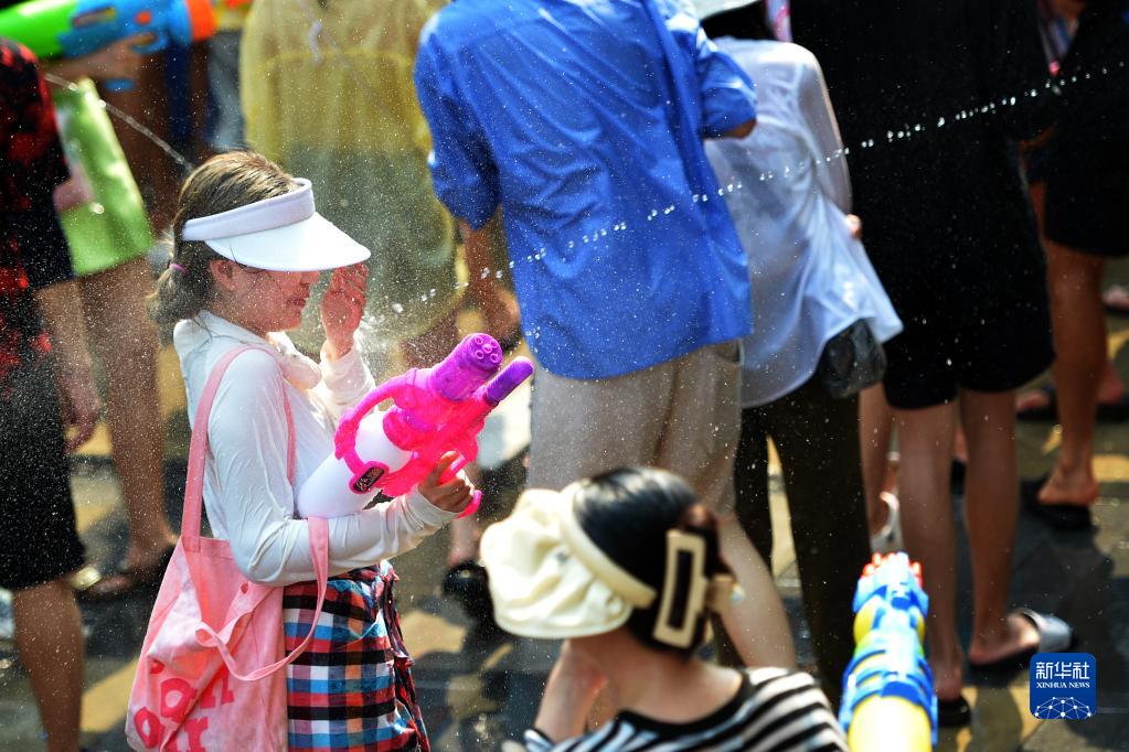 4月13日,人們在泰國曼谷慶祝潑水節。