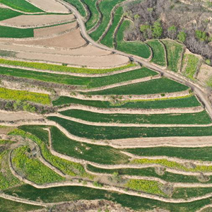 近日,甘肅省平?jīng)鍪谐缧趴h錦屏鎮縱橫交錯的梯田色彩斑斕,宛如春日大地“調色板”。