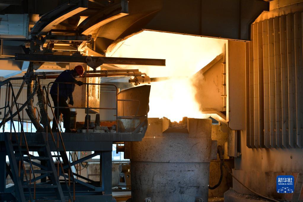 4月13日,工人在位于張掖市甘州區的20萬(wàn)噸硅系新材料綜合利用項目一期9萬(wàn)噸工業(yè)硅生產(chǎn)車(chē)間作業(yè)。