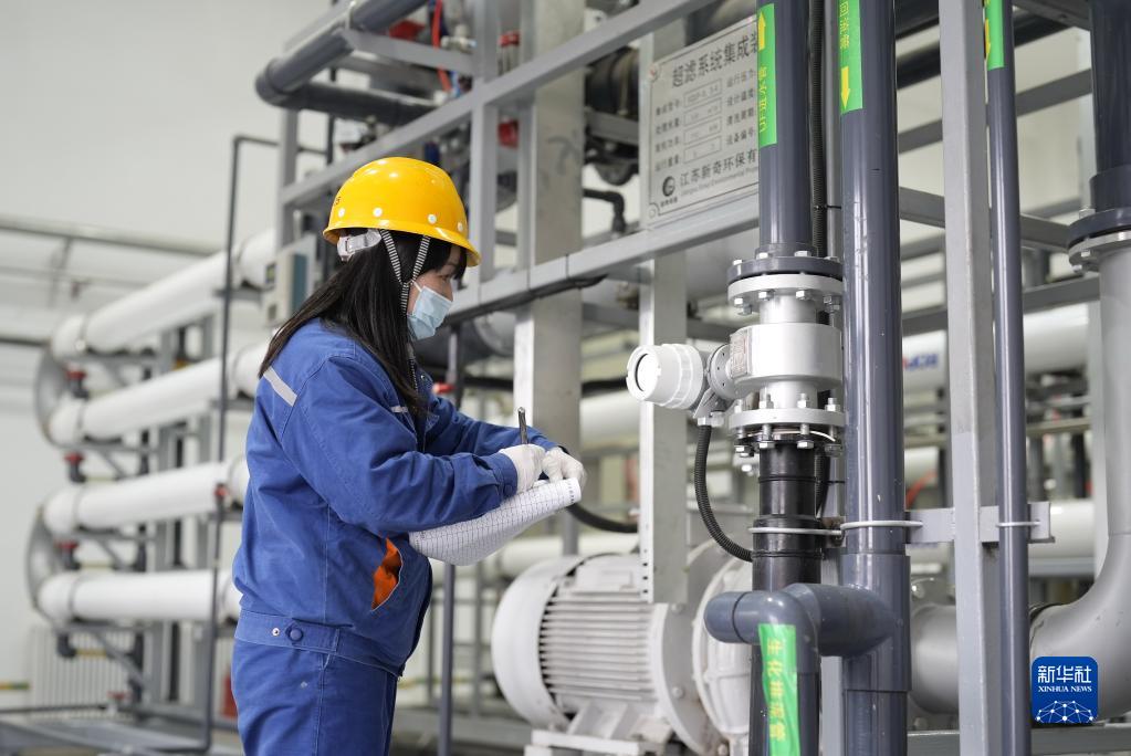 4月13日,工作人員在唐山冀東啟新水泥有限責任公司滲液處理站內記錄設備運轉情況。該處理站可將生活垃圾產(chǎn)生的滲濾液經(jīng)處理后轉化為工業(yè)用水。