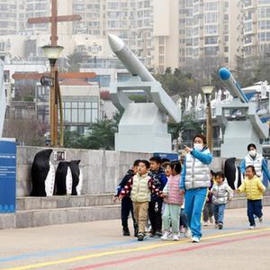 4月14日,孩子們在青島海洋軍事博物館參加研學(xué)活動(dòng)。