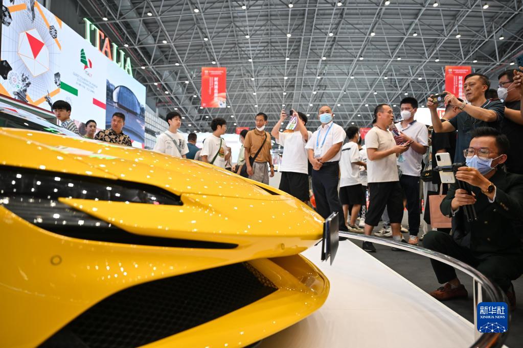 4月14日,觀(guān)眾在消博會(huì )現場(chǎng)參觀(guān)展車(chē)。