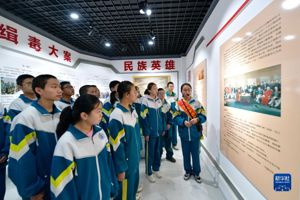 4月14日,在張掖市禁毒教育基地,學(xué)生們參觀(guān)展覽。