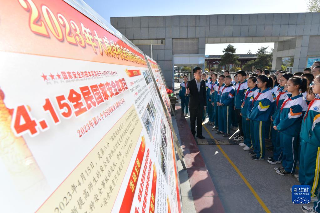 4月14日,在張掖市甘州區大成學(xué)校,老師給學(xué)生講解國家安全相關(guān)知識。
