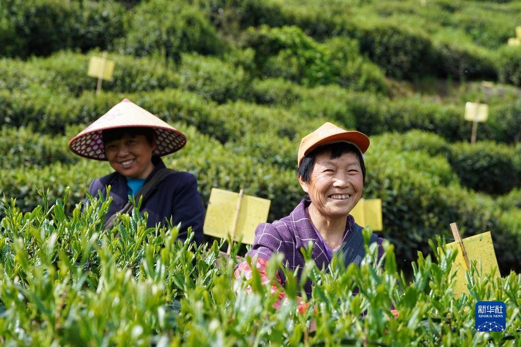 4月14日,在安徽省黃山市黃山區新明鄉猴坑村,茶農采摘太平猴魁鮮葉。