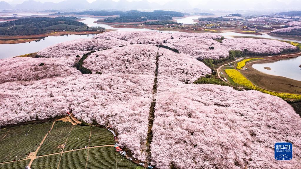 貴州省貴安新區櫻花園風(fēng)貌(3月21日攝,無(wú)人機照片)。