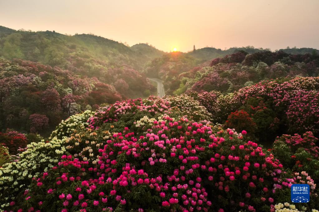 這是連片的百里杜鵑(無(wú)人機照片,2021年3月30日攝)。