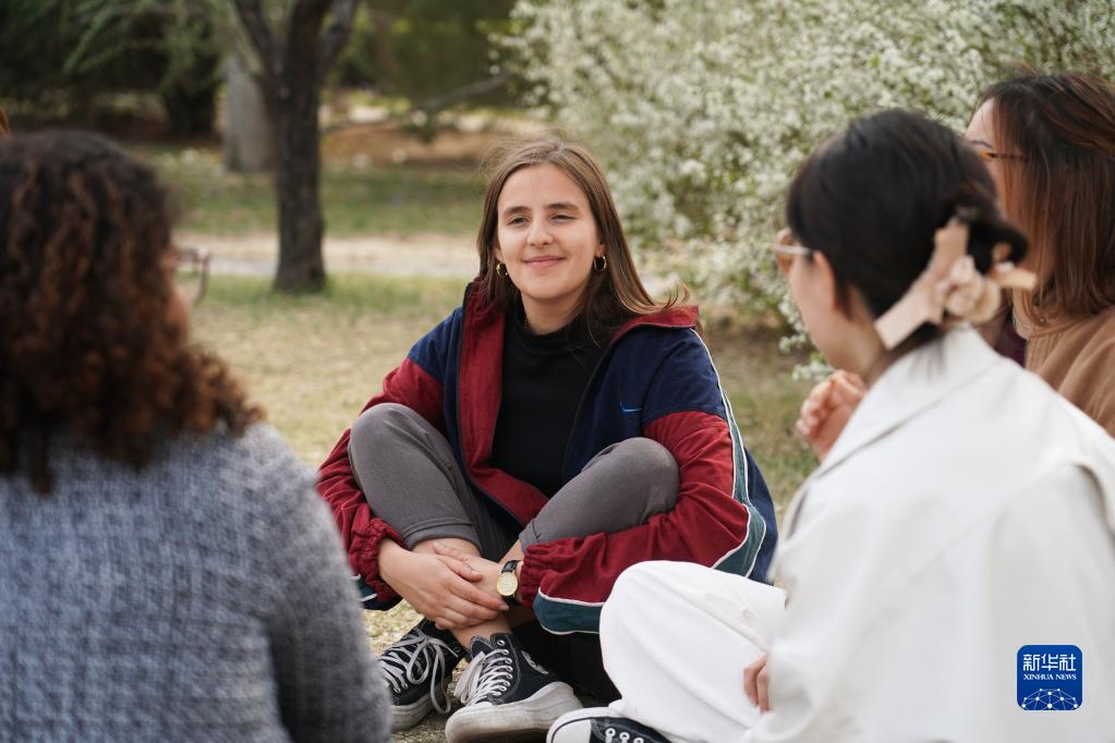 3月31日,微微(左二)在北京大學(xué)與同學(xué)們交流。