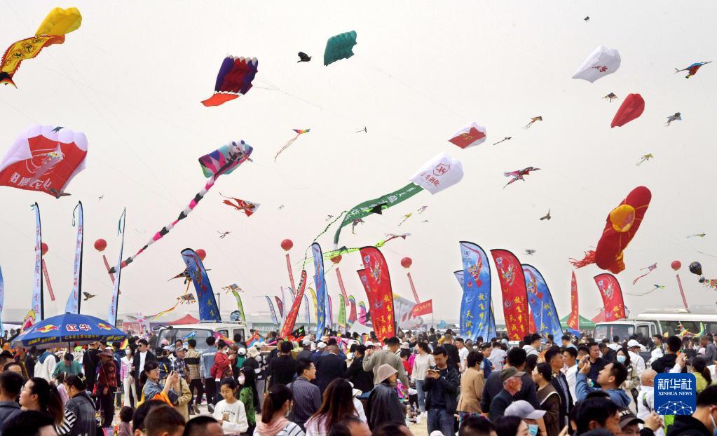 4月15日拍攝的第40屆濰坊國際風(fēng)箏會(huì )現場(chǎng)。