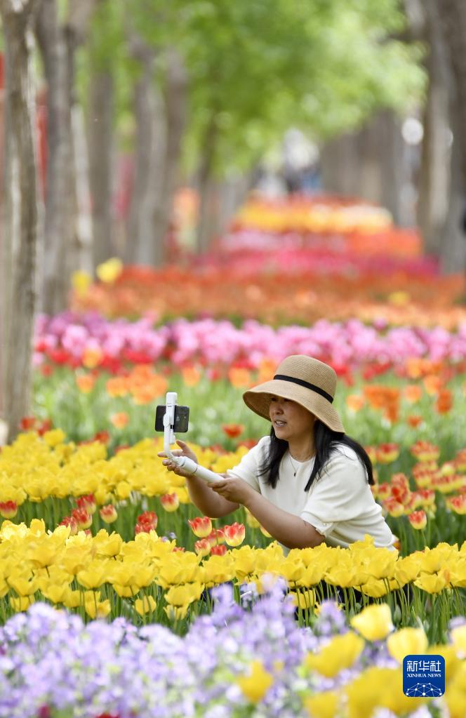 當日,北京永定河綠色港灣郁金香文化節在大興區北臧村鎮開(kāi)幕,100余萬(wàn)株各式花卉競相開(kāi)放,游客徘徊其間宛如游弋在七彩花海。