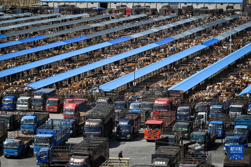4月12日拍攝的繁忙的成峰牲畜交易市場(chǎng)。