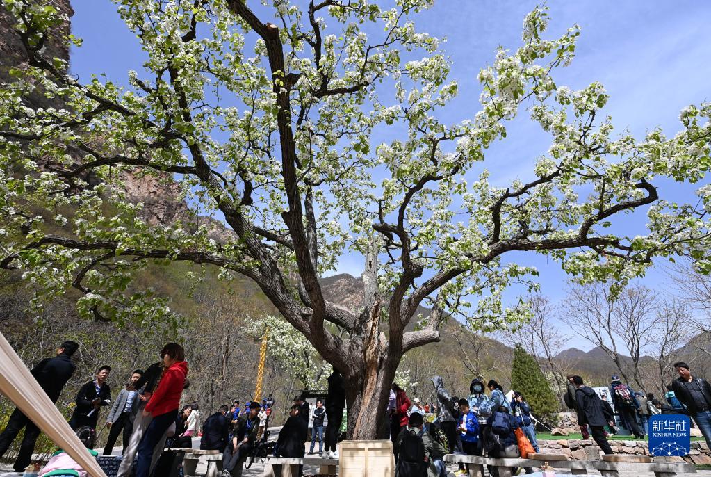 4月15日,游客在天津市薊州區梨木臺景區內游玩。