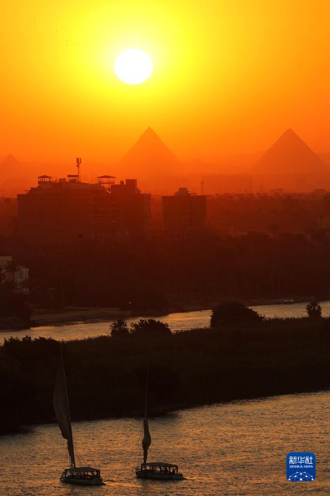 這是4月15日在埃及開(kāi)羅拍攝的吉薩金字塔群日落景色。