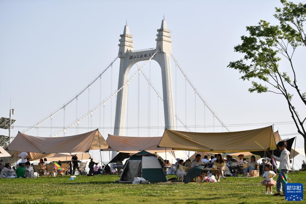 4月16日,市民在長(cháng)沙市開(kāi)福區湘江畔露營(yíng)休閑。