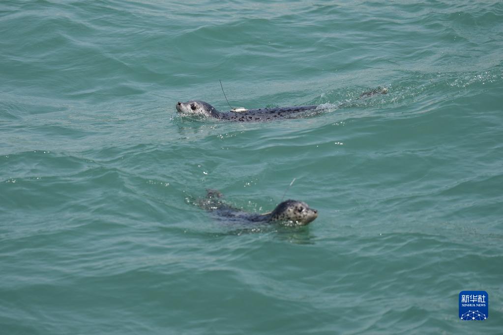 4月16日,被放歸的西太平洋斑海豹在大連市旅順口區附近海域活動(dòng)。