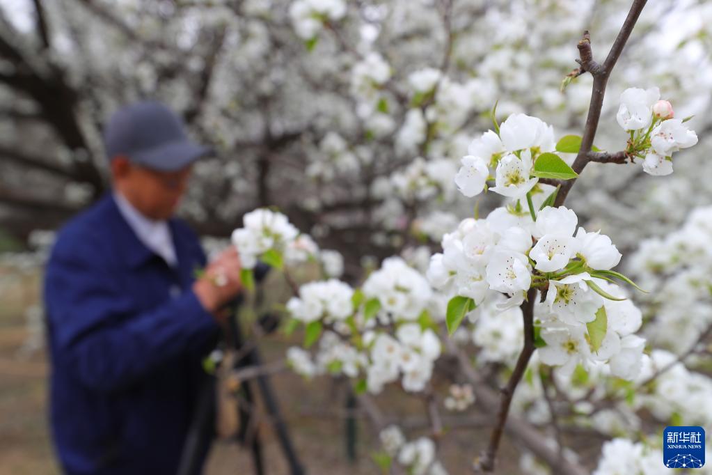 4月17日,攝影愛(ài)好者在拍攝梨花。