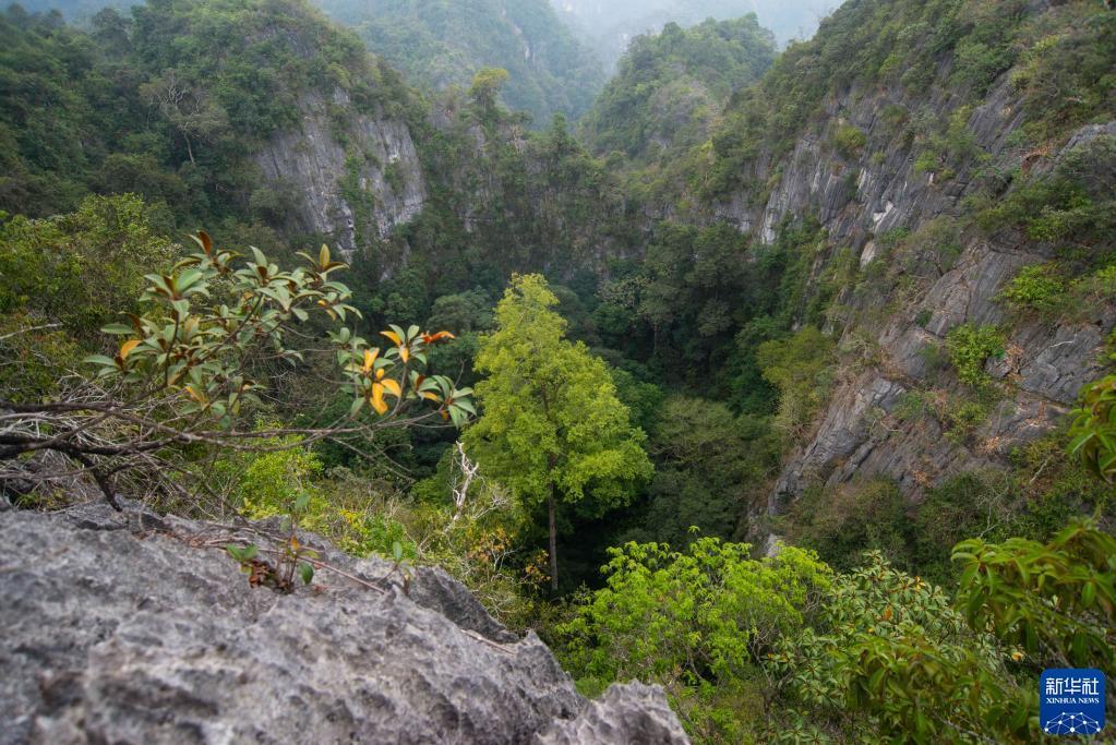 3月15日拍攝的位于巖溶峰叢洼地中的望天樹(shù)。