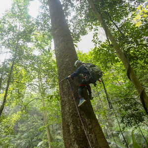 調查結果顯示,此望天樹(shù)胸徑為132.4厘米,冠幅為31米×25米,樹(shù)干材積23.3立方米。參考已有望天樹(shù)生長(cháng)規律研究結果,科考隊估測這株望天樹(shù)的年齡約150年,處于壯年期。
