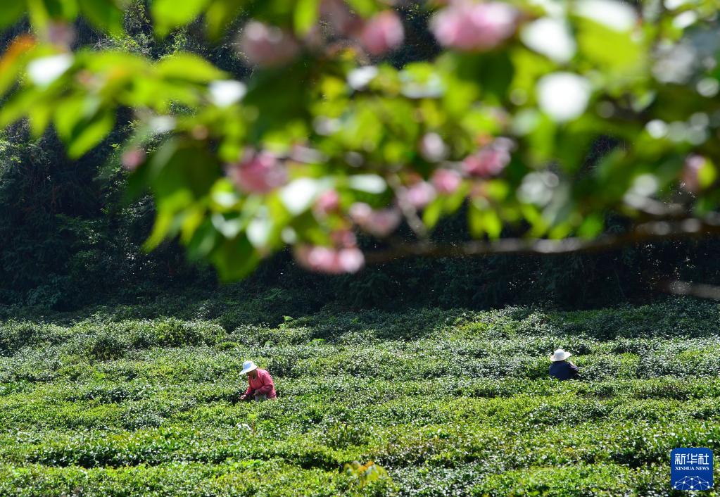 4月17日,采茶工在江蘇省無(wú)錫市濱湖區雪浪街道一茶場(chǎng)采茶。