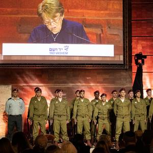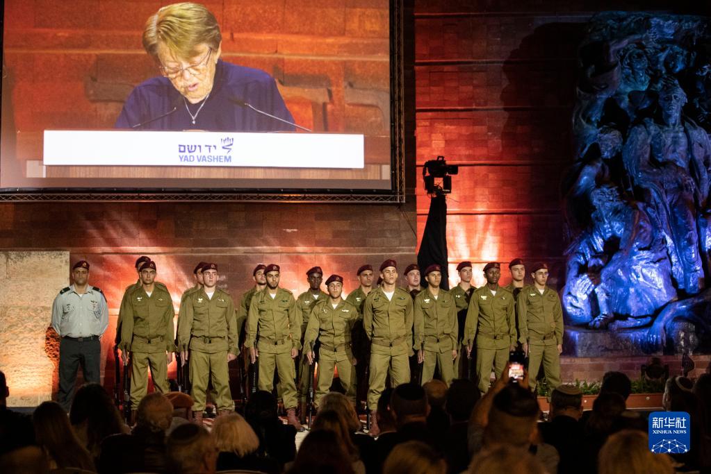 以色列17日晚在位于耶路撒冷赫茨爾山的亞德瓦希姆大屠殺紀念館舉行大屠殺紀念日活動(dòng),悼念第二次世界大戰中的猶太死難者。