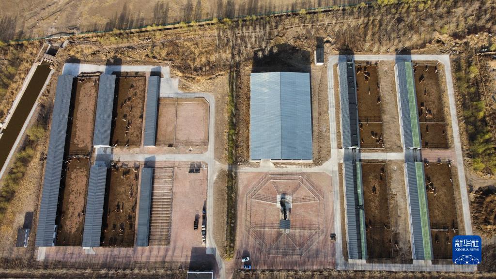 4月17日,這是通遼市科爾沁左翼中旗一家肉牛種業(yè)公司的牛圈(無(wú)人機照片)。