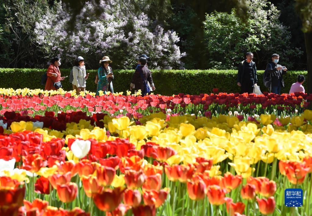目前,北京中山公園的郁金香花開(kāi)正艷。據了解,今年,北京中山公園布置了六個(gè)主題景區,展出85個(gè)品種近20萬(wàn)株郁金香及洋水仙、葡萄風(fēng)信子等球根花卉。
