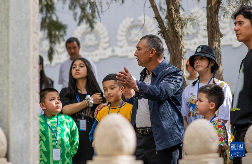 4月16日,在葉城烈士陵園,艾尼瓦爾·艾買(mǎi)爾(右四)為小朋友講述英雄事跡。