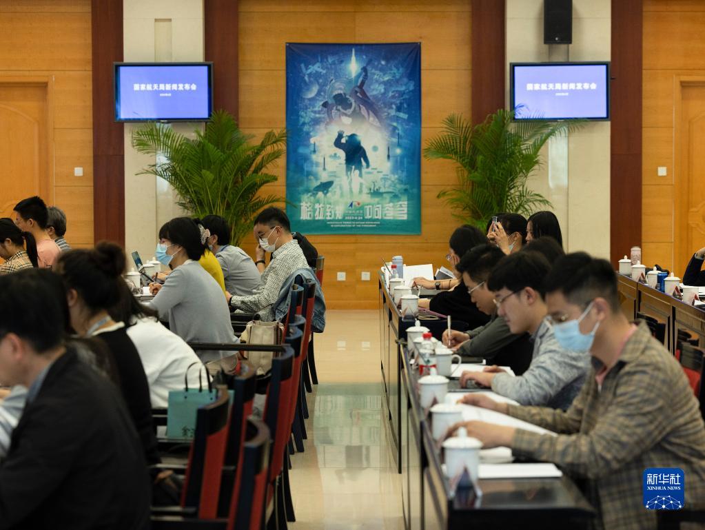 4月18日拍攝的2023年中國航天日新聞發(fā)布會(huì )現場(chǎng)。