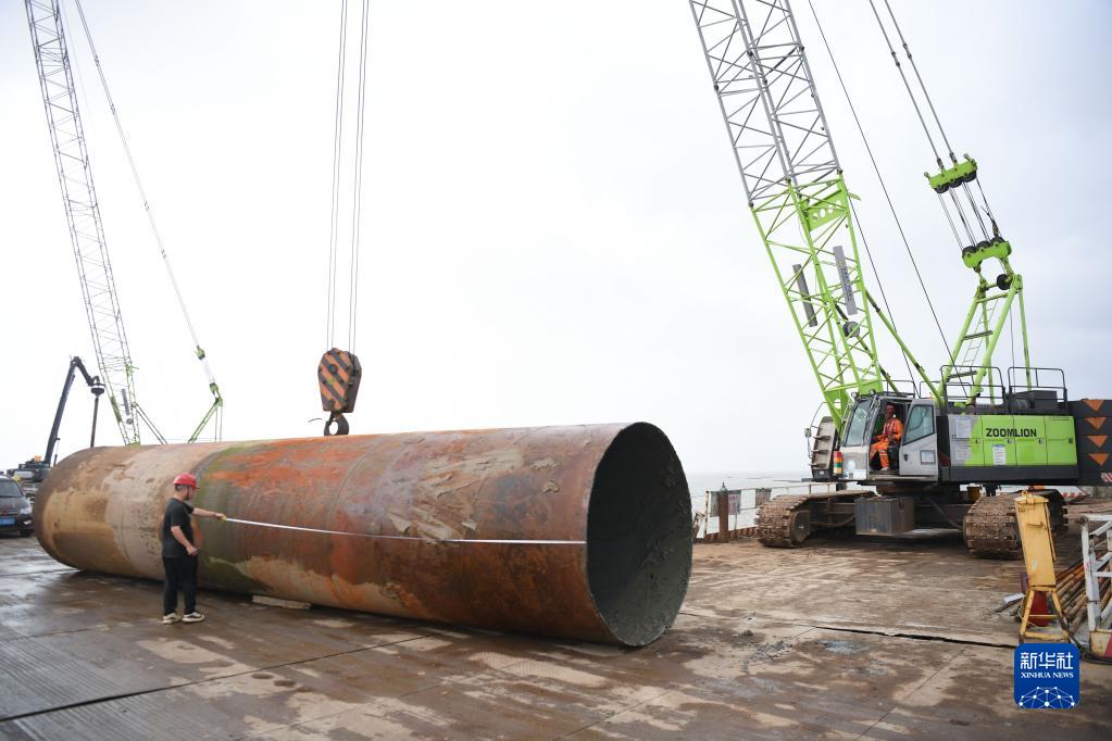 4月18日,工人在黃茅??绾Mǖ傈S茅海大橋施工作業(yè)。
