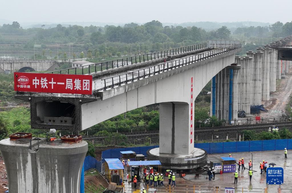 當日,中鐵十一局承建的滬渝蓉高速鐵路荊門(mén)特大橋跨焦柳鐵路連續梁順利轉體,這是滬渝蓉高鐵完成轉體施工的首座轉體橋。