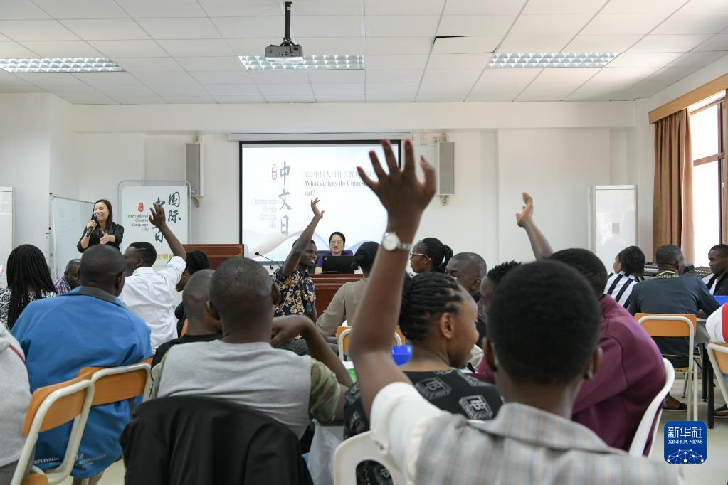 肯尼亞內羅畢大學(xué)孔子學(xué)院18日舉辦“中文,增進(jìn)文明對話(huà)”主題活動(dòng),慶祝即將到來(lái)的第14個(gè)聯(lián)合國中文日??夏醽唽W(xué)生參與互動(dòng),進(jìn)行書(shū)法、剪紙、唱中文歌等活動(dòng)。
