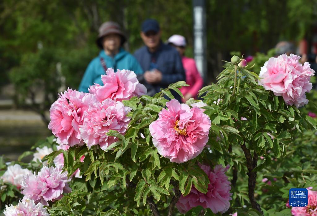 4月19日,游客在北京圓明園內欣賞盛開(kāi)的牡丹花。