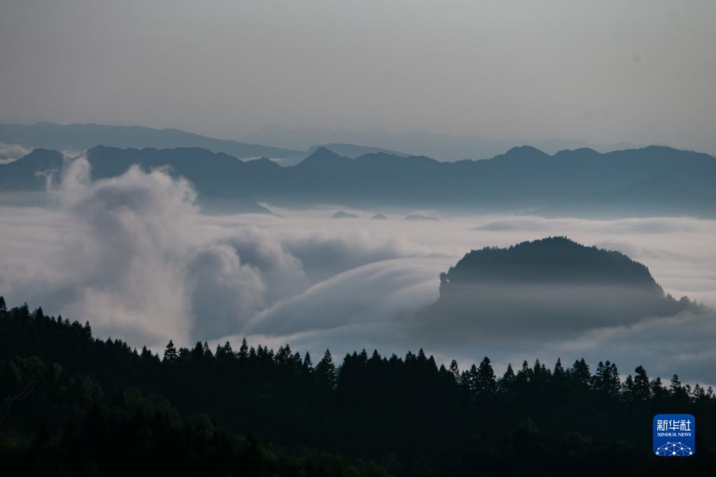 當日,位于重慶市南川區的世界自然遺產(chǎn)地金佛山雨后放晴,山間升騰起的水汽匯聚成云海在山巒之間流淌,美不勝收。