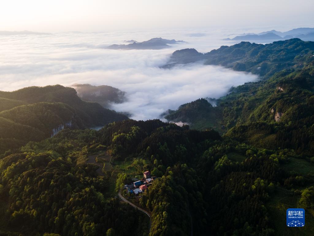 這是4月19日拍攝的金佛山云海景觀(guān)(無(wú)人機照片)。