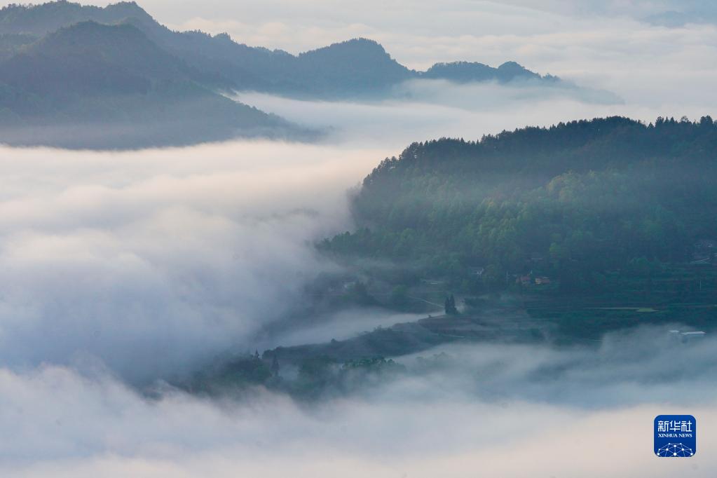 當日,位于重慶市南川區的世界自然遺產(chǎn)地金佛山雨后放晴,山間升騰起的水汽匯聚成云海在山巒之間流淌,美不勝收。
