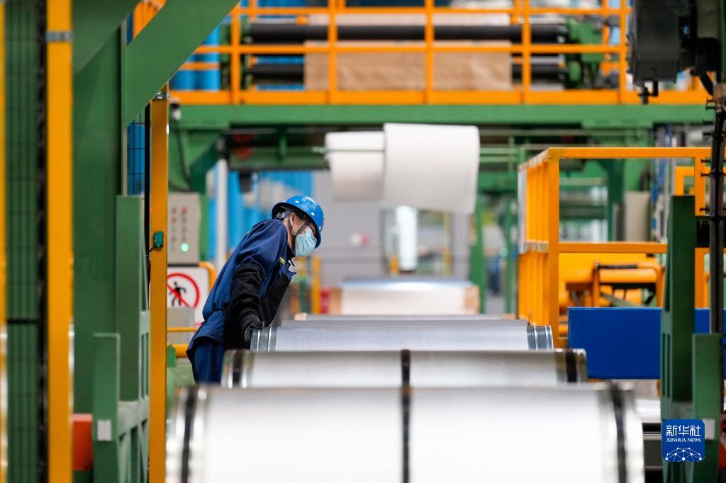 4月19日,工作人員在取向電工鋼產(chǎn)品包裝線(xiàn)上巡檢。